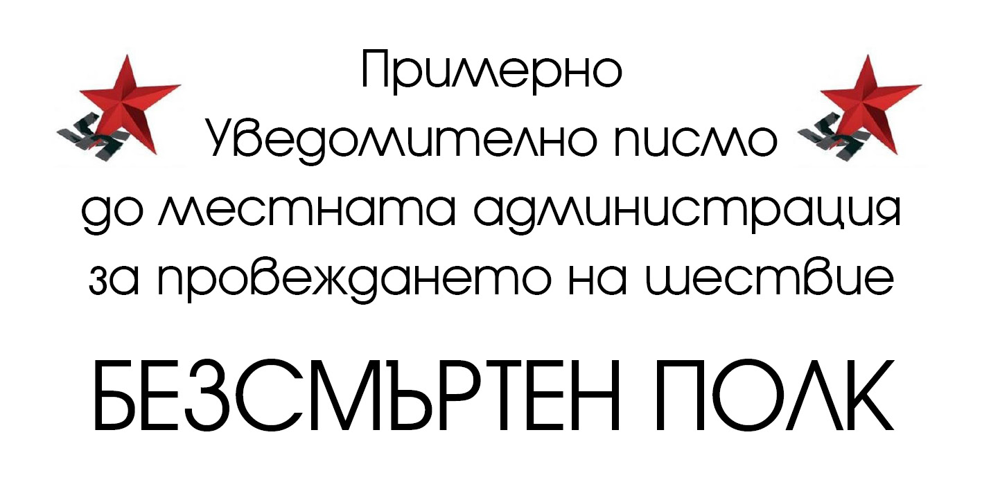 * Учредителите на Безсмъртният полк притежават юридическите права върху наименованието в Република България. Никое друго лице не може да използва наименованието Безсмъртният полк без изричното, подписано и подпечатано, разрешение от учредителите.